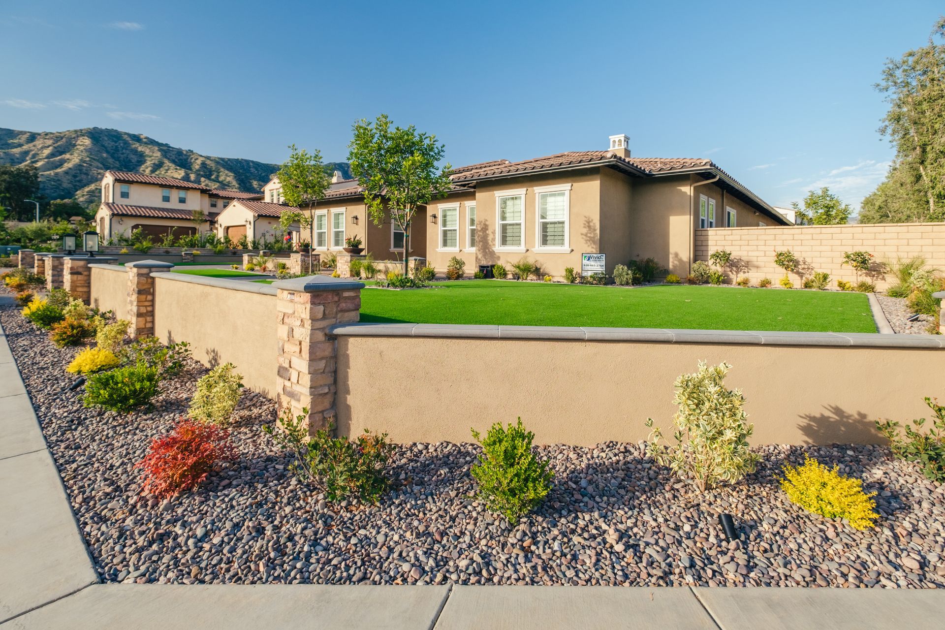 Vivid Landscape, we design, install, and maintain beautiful outdoor spaces for homes and businesses in Los Angeles County, Orange County, and the Inland Empire. Our dedicated team is ready to fulfill your vision, whether you need lawn care, hardscaping, irrigation, or artificial turf.